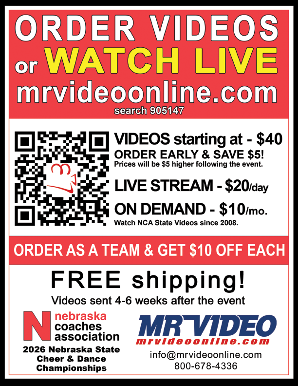 Varsity Spirit will continue to assist the Nebraska Coaches Association in the operation of the annual Nebraska State Cheer and Dance Championships in February.